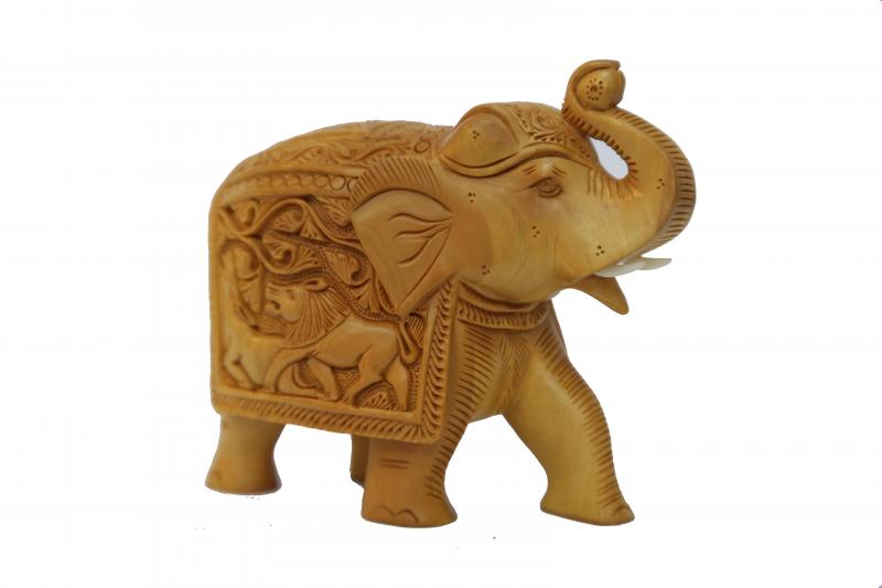 The natural wood finish enhances the fine details, making it a perfect addition to your home decor, office space, or as a thoughtful gift. Ideal for display on shelves, tables, or as part of an artistic collection, this wooden elephant symbolizes strength, wisdom, and prosperity.