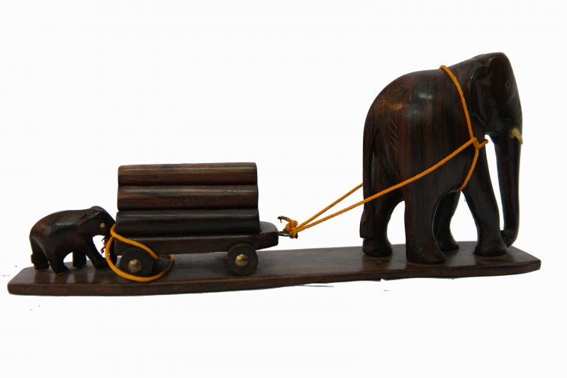 Wooden Elephant with cart