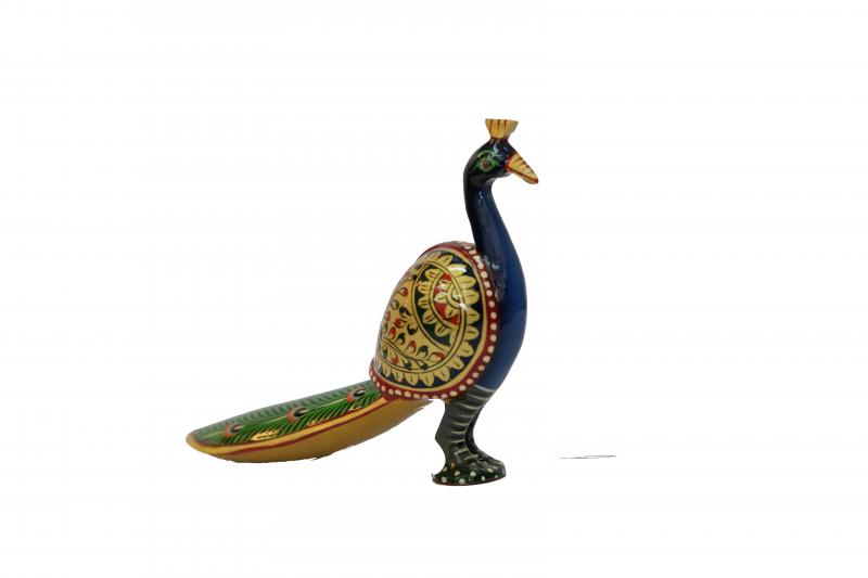 - Design: Features an intricately hand-painted design that highlights the vibrant colors and detailed patterns of the peacock’s feathers. The long tail adds an eye-catching dimension, reflecting traditional artistry and craftsmanship.
